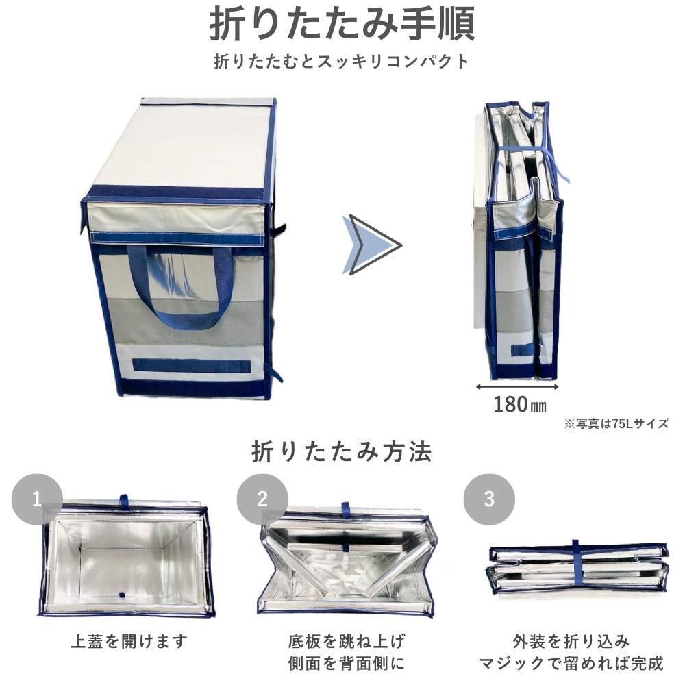 例えば、大容量の300Lタイプでも本体重量は約7kg程度。大量の食材や支援物資を運ぶ際に、運搬者の負担を大幅に軽減します。
