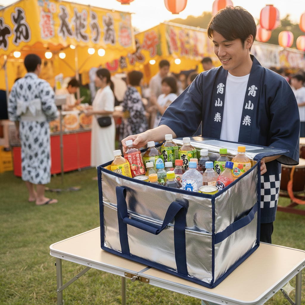 お祭りのキンキンに冷えたドリンクから、屋外での生鮮食品まで。どんなに暑い日でも、フタを開けた瞬間にひんやりした冷気がふわっと立ち上がる——。その確かな安心感があれば、「次はどこに寄ろうかな?」なんて、いつもの買い物がもっと自由で楽しい時間に変わります。