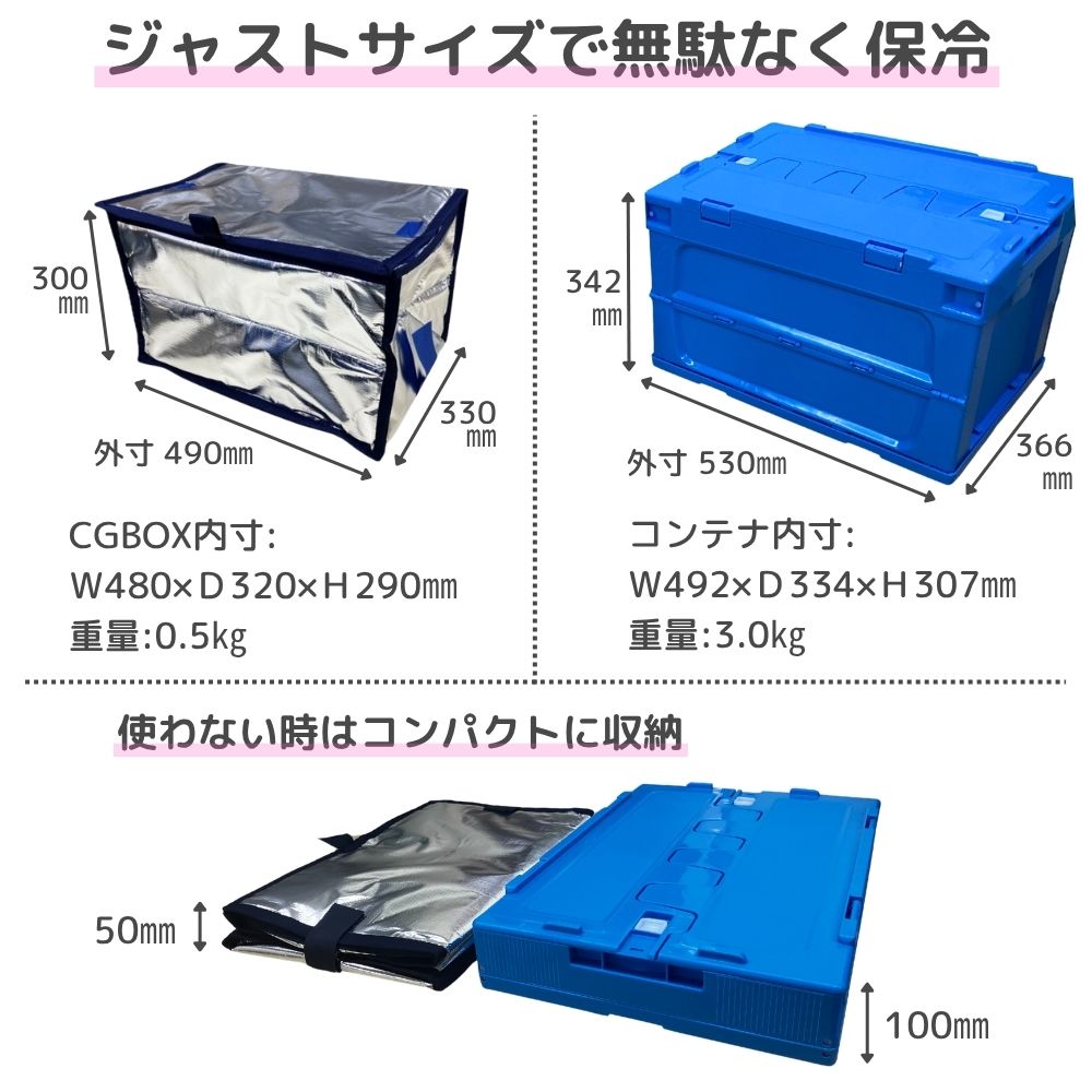 この2つを組み合わせたとき、真の価値が生まれます。CGBOXの中に、用途に合わせて設定したBAG in BAGを配置することで、一つの箱の中で「冷凍・チルド・常温」を同時に管理することが可能になります。