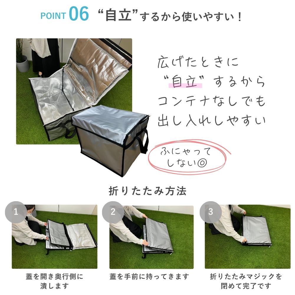 75Lから最大300Lまでの豊富なサイズ展開は、クリスマスケーキやおせち料理など、イベント時の大量の商品保管や輸送にも最適。折りたためるソフトタイプながら、確実な高保冷力で大量の商品を安全に運びたいというニーズに応えます。
