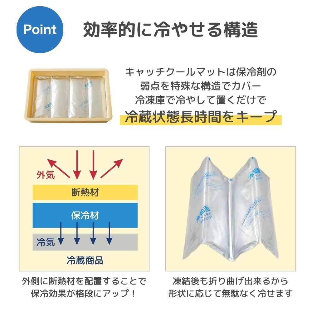 保温・保冷ボックスの効果を最大限に引き出し、より確実に温度管理を行いたい方におすすめしたいのが、弊社がお取引している蓄冷材メーカー「(株)トライ・カンパニー」さんの【キャッチクールマット】です。