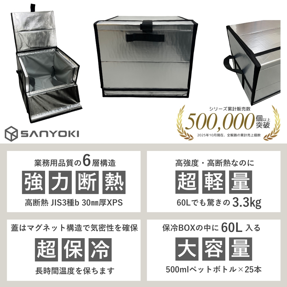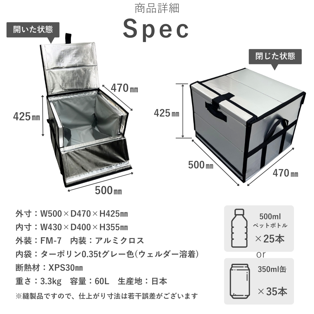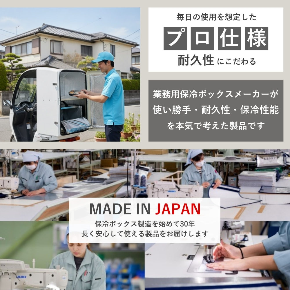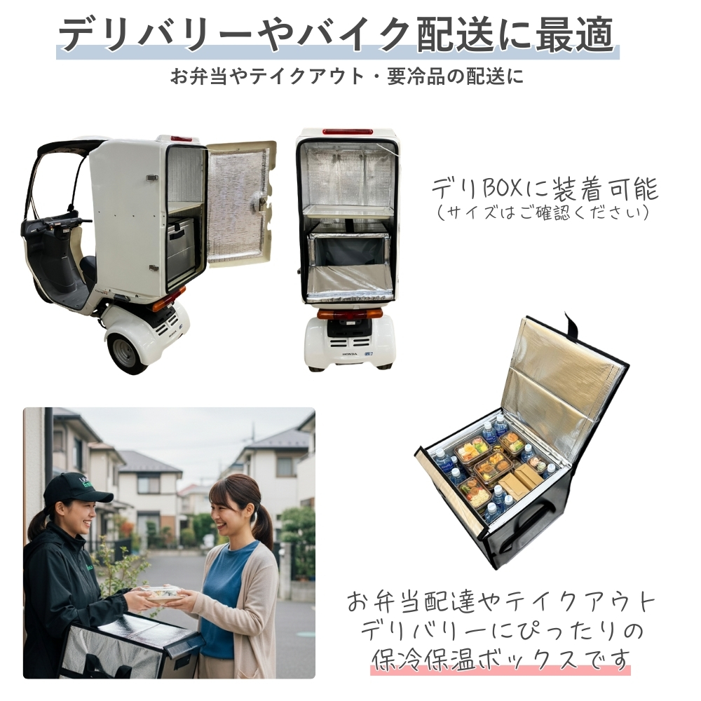 ・内装にはアルミ生地と、断熱材にXPS30mm入っており、保冷保温が可能です