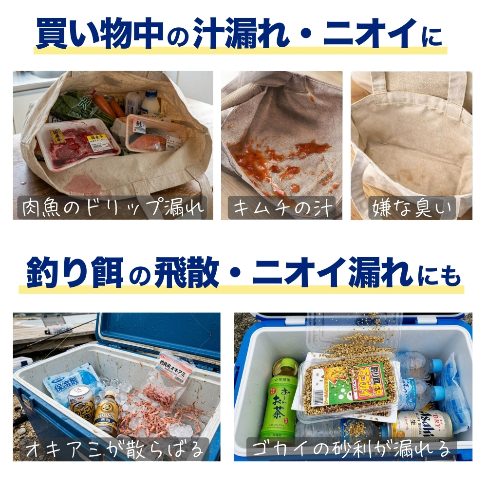 繰り返し使えるので、日常の買い物はもちろん、アウトドアや釣り餌の持ち運びにもおすすめです。