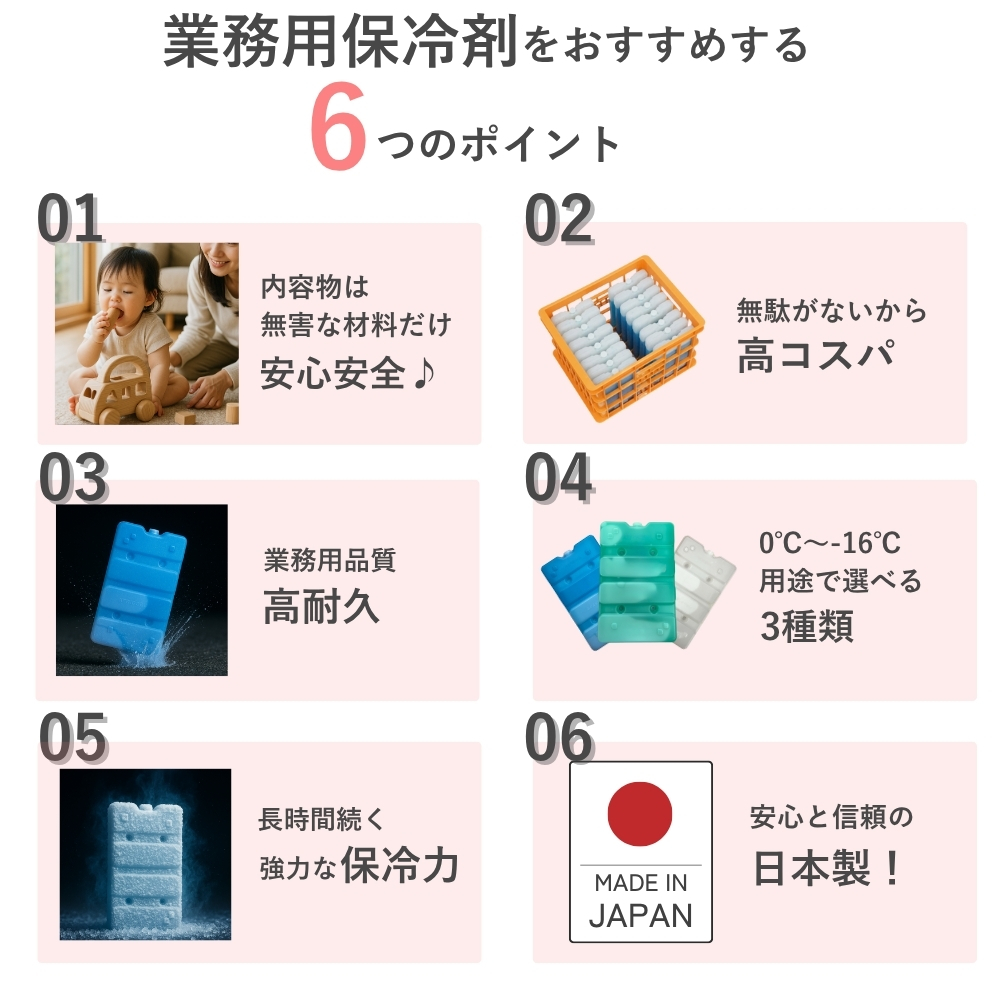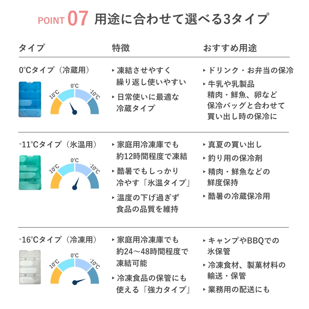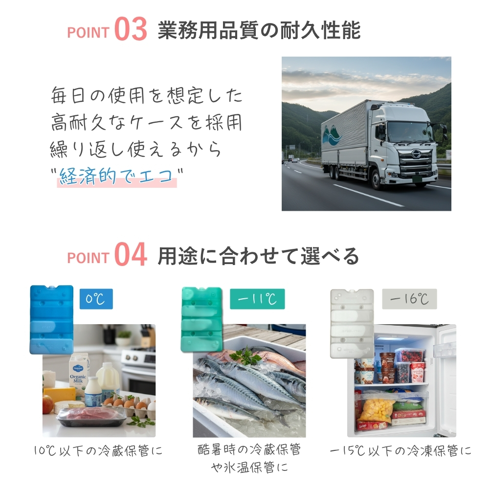繰り返し使用可能なハードケースタイプ、形状が変わらないため無駄な保冷スペースをとりません。