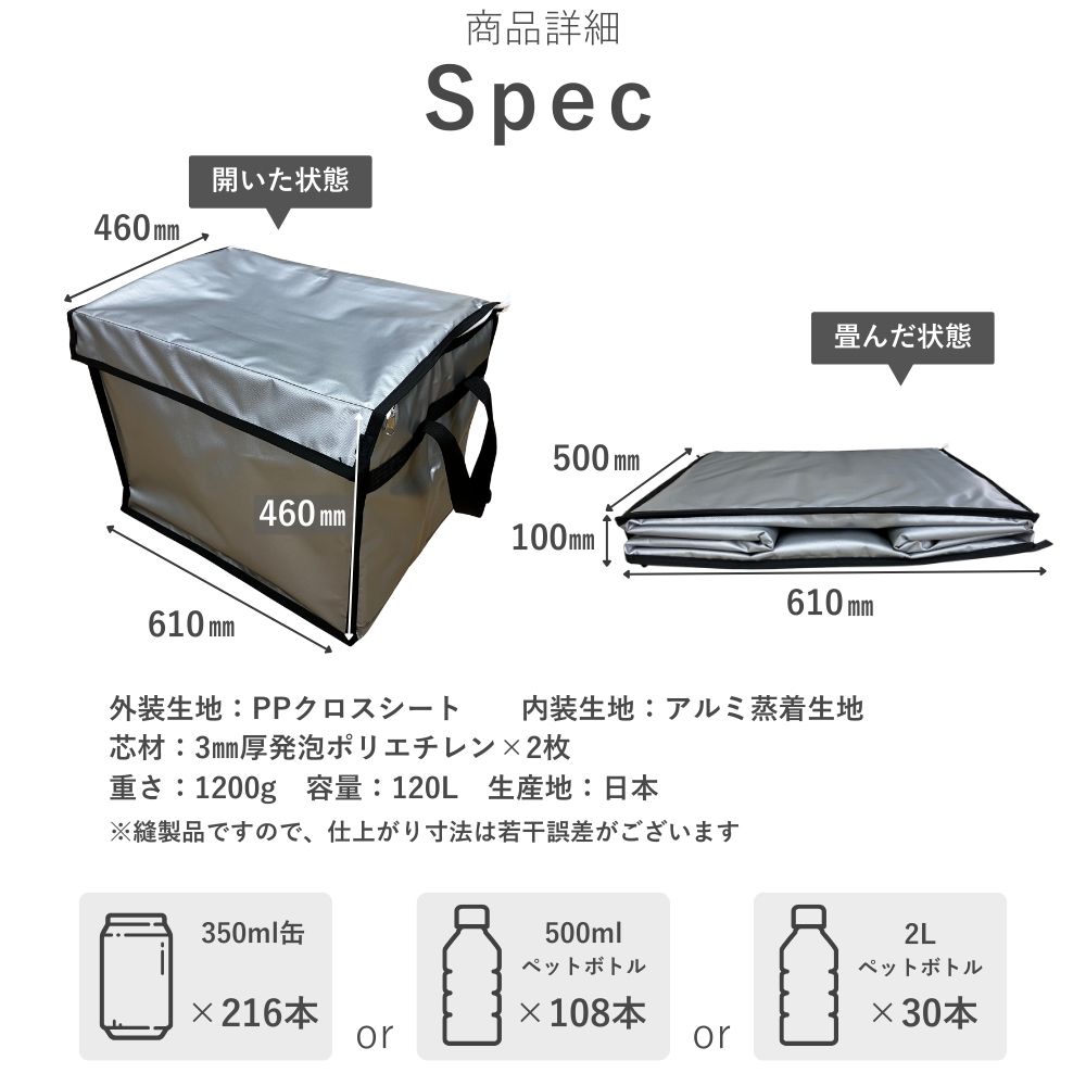 ・内装にはアルミ生地と、断熱材に3mm発泡が2枚入っており、高い保冷保温性能