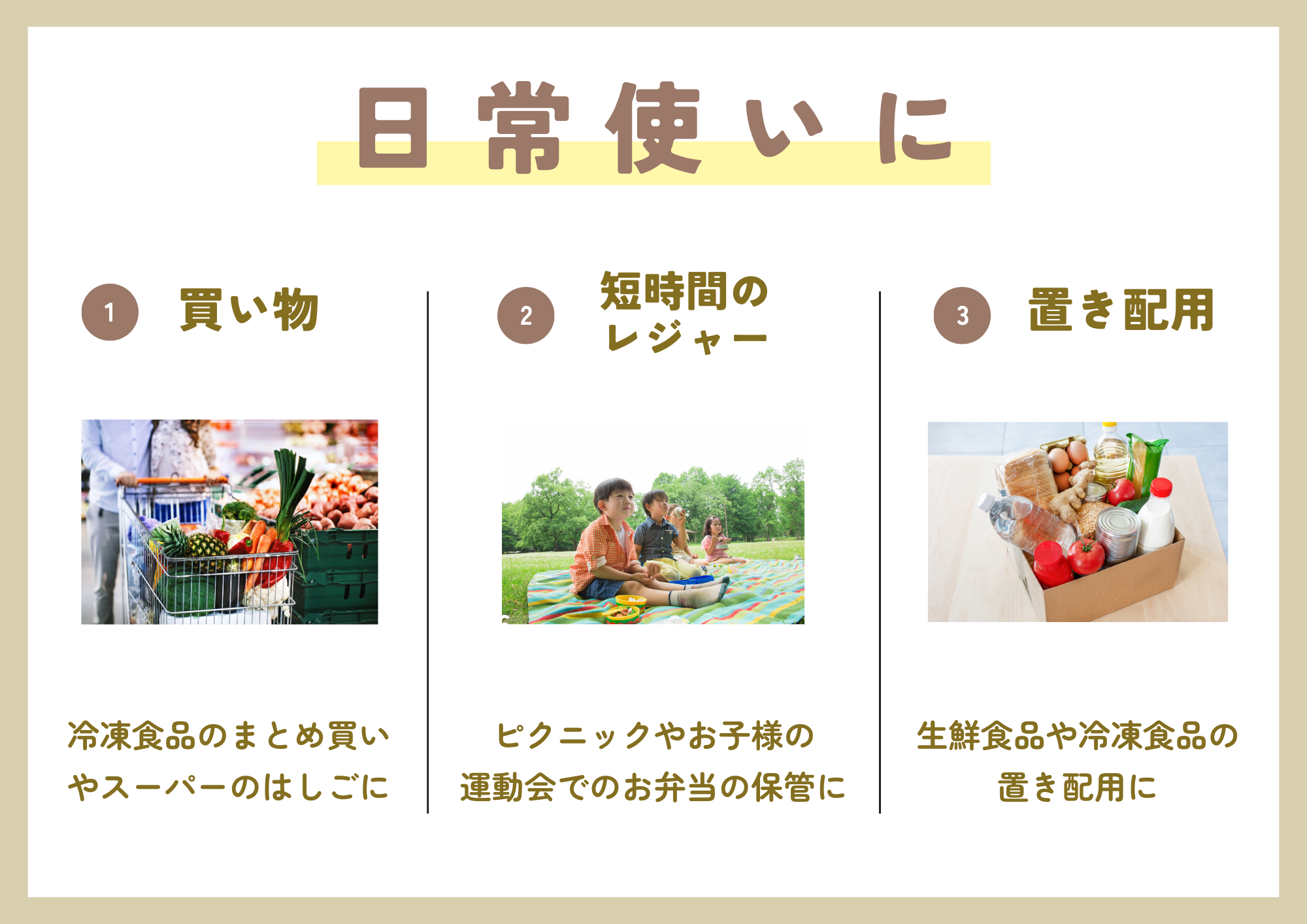 スーパーでのまとめ買いや、ちょっとしたお出かけの際の食材・飲み物の持ち運び、デリケートな生鮮品の置き配など、普段の生活の中で食品の温度管理は非常に重要です。
