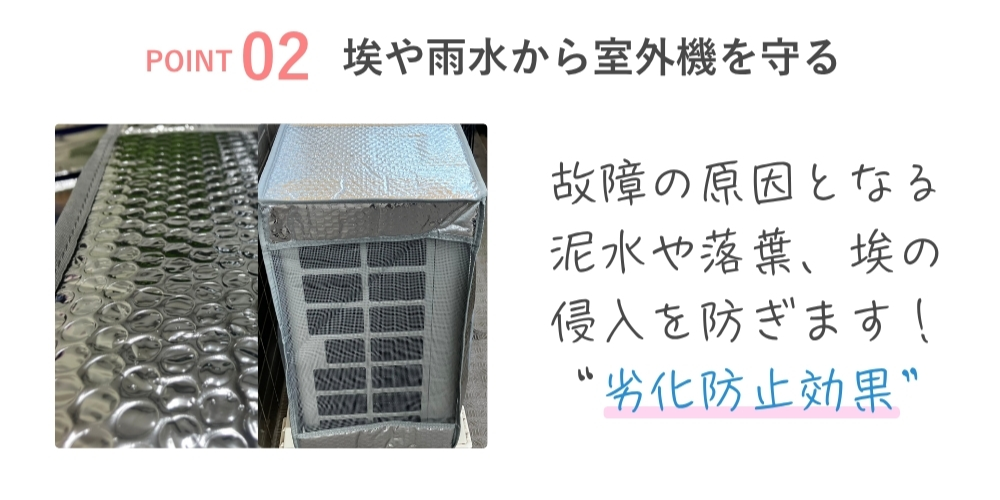 室外機は雨、風、砂埃、そして都市部であれば排気ガスといった外的要因から常に攻撃を受けています。