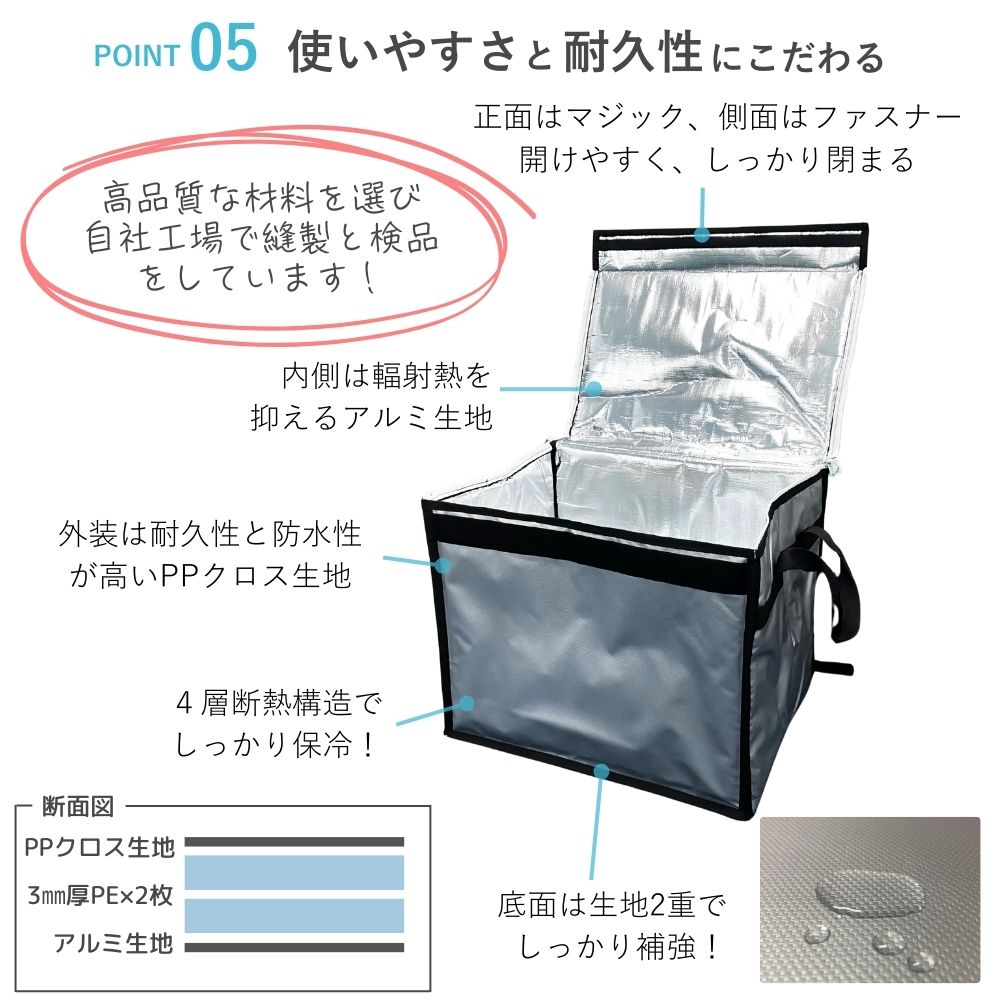 ③温まった商品を冷やすために保冷剤のパワーを使ってしまうと、保冷時間が短くなります。必ず事前に冷やしてから入れてください。