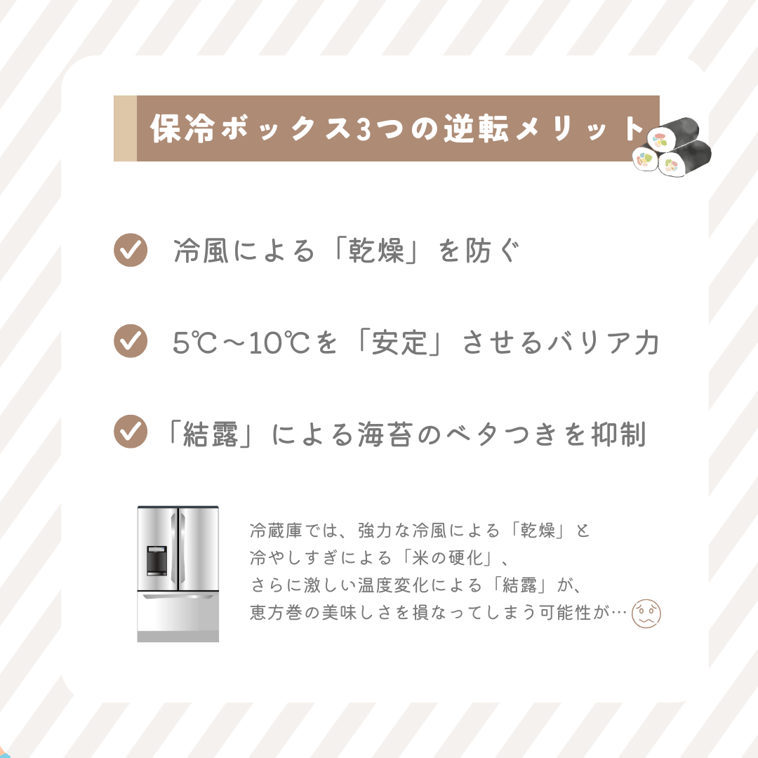 実は、恵方巻を美味しく保つための「黄金温度」は5℃〜10℃と言われています。
