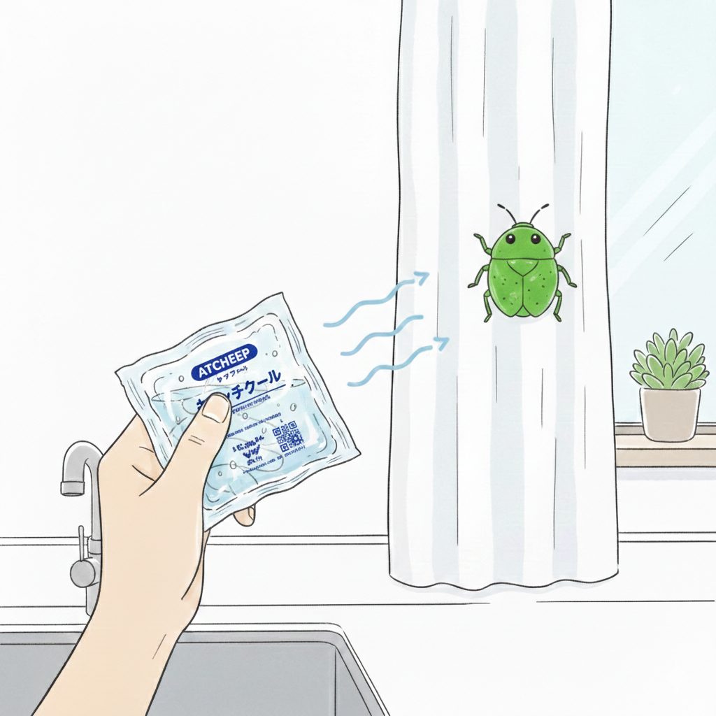 殺虫剤を使いたくない場所でのカメムシ対策。凍った保冷剤をそっと近づけると、冷たさで動きが止まります。ニオイを出される前にサッと片付けられる、知る人ぞ知る賢い活用法です。