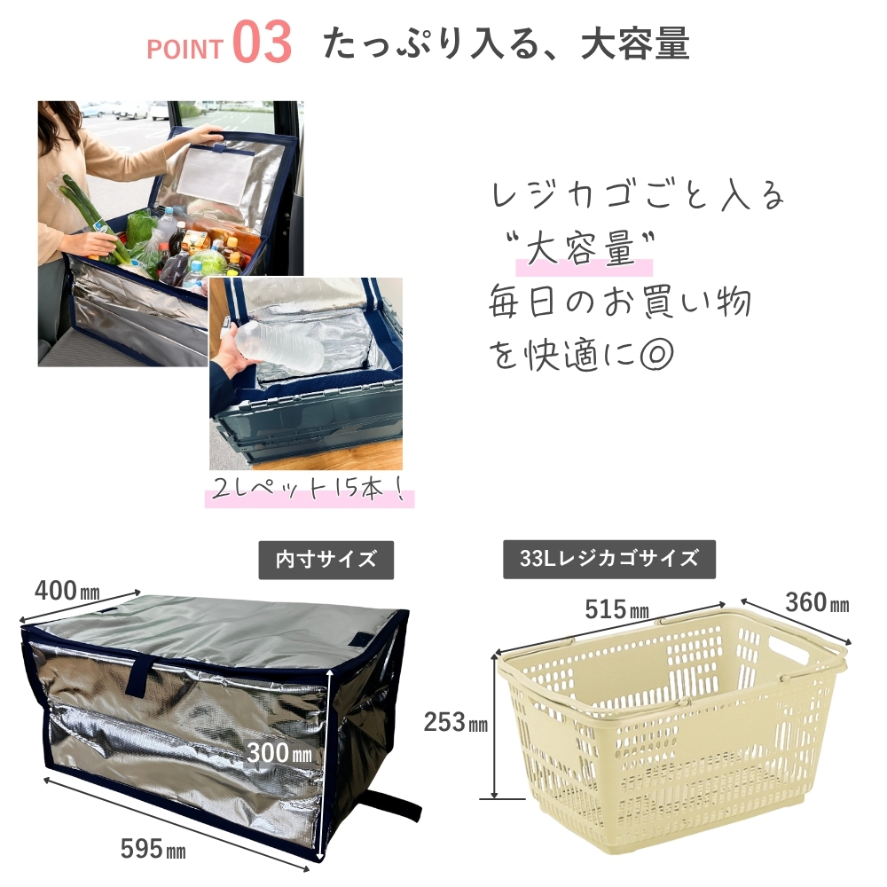 1.お買い物カゴをそのままイン!型崩れを許さないプロ仕様の底広サイズ