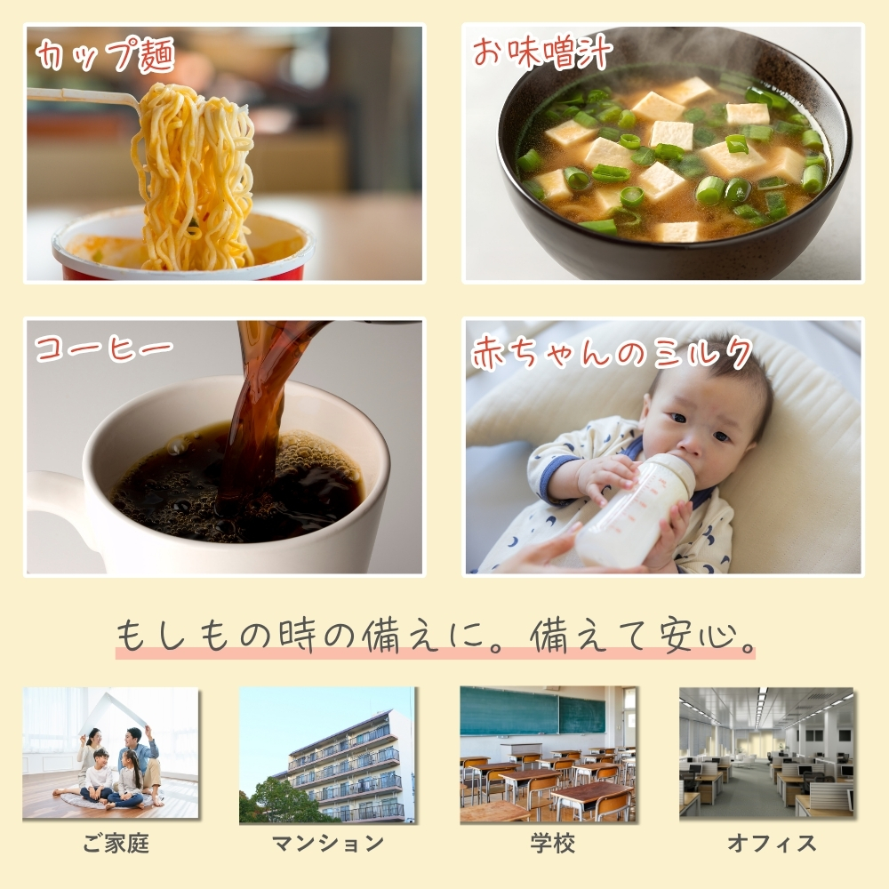 避難生活で最もストレスを感じるのは「冷たい食事」が続くこと。カセットコンロさえ使えない状況でも、これがあれば温かい一杯が作れます。