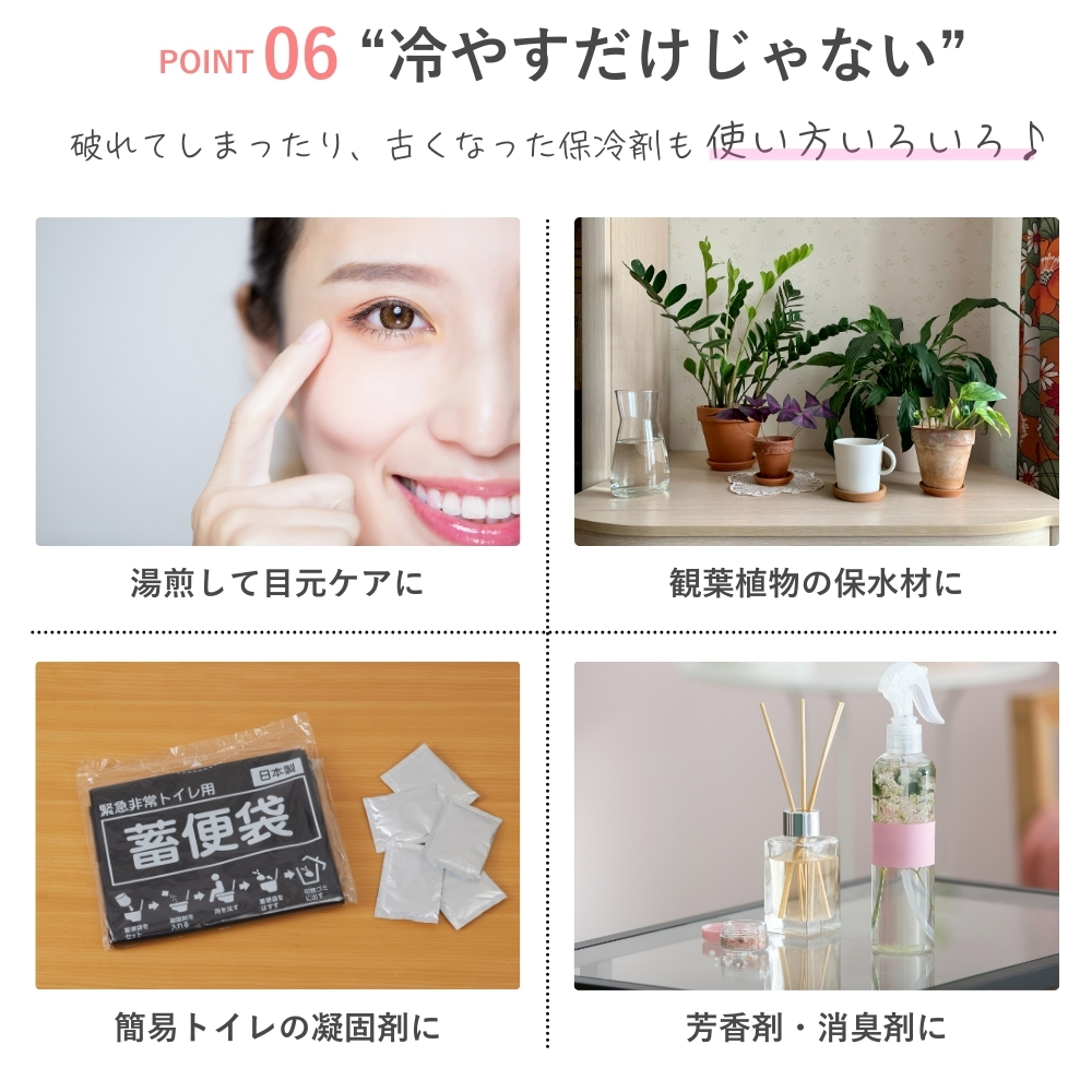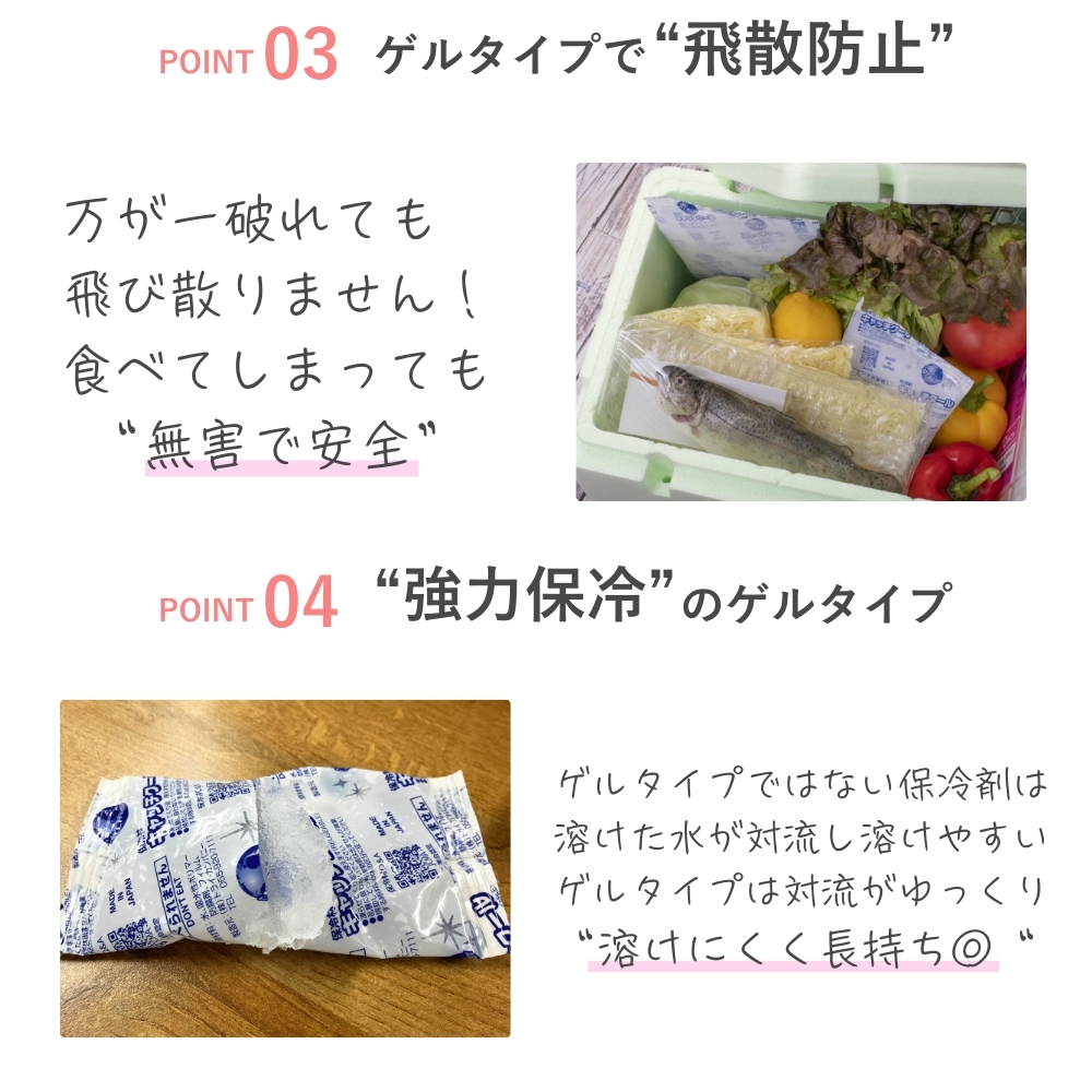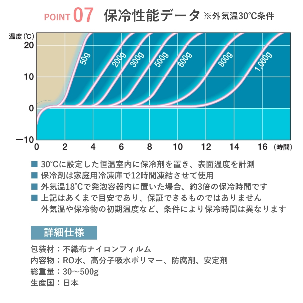 ・完全に凍結するまでの時間は、冷凍庫の温度、保冷剤の大きさ、季節などによって異なります。時間に余裕をもって凍結させてください。
