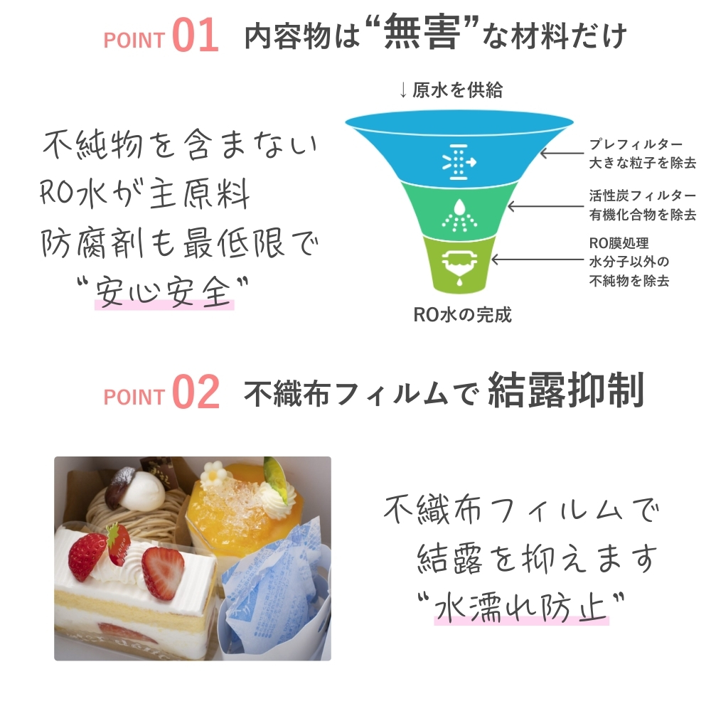 主成分:RO水、高分子吸水ポリマー、防腐剤、安定剤