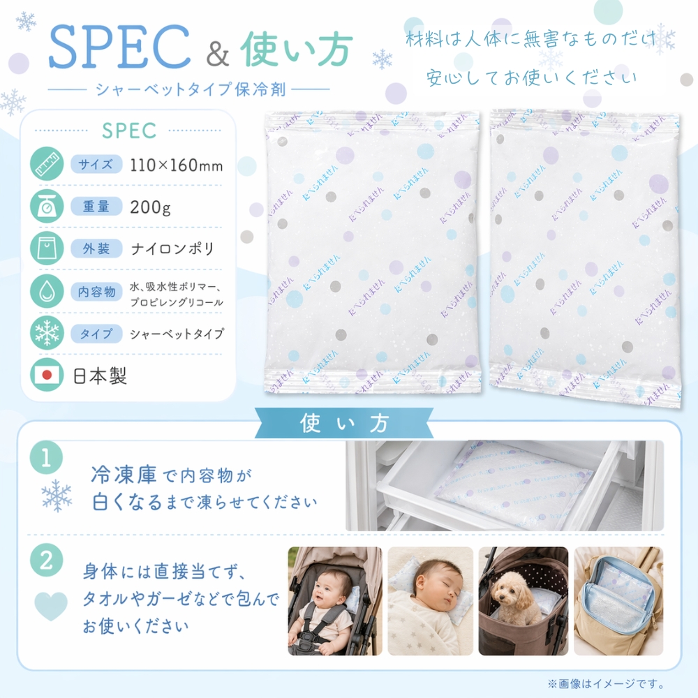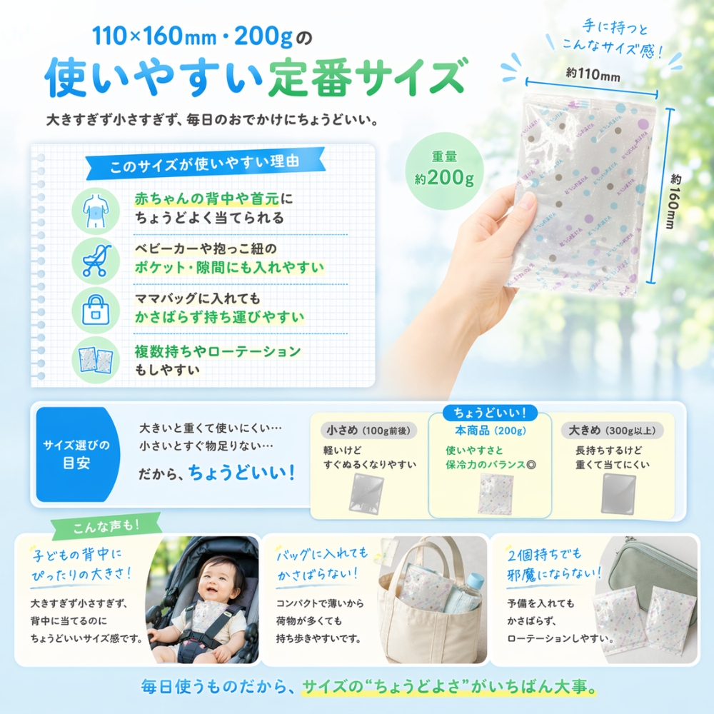 シャーベットタイプ 保冷剤 日本製 110×160mm 200g ベビーカー 抱っこ紐 チャイルドシート お昼寝 ペットカート 暑さ対策 保冷パック 繰り返し使える保冷剤をお探しの方におすすめです。