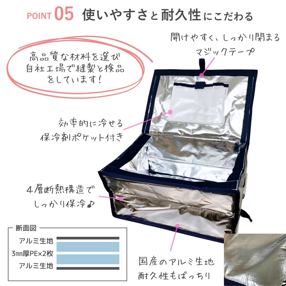 ・蓄冷剤ネット付き。必要に応じて蓄冷剤をセットできます